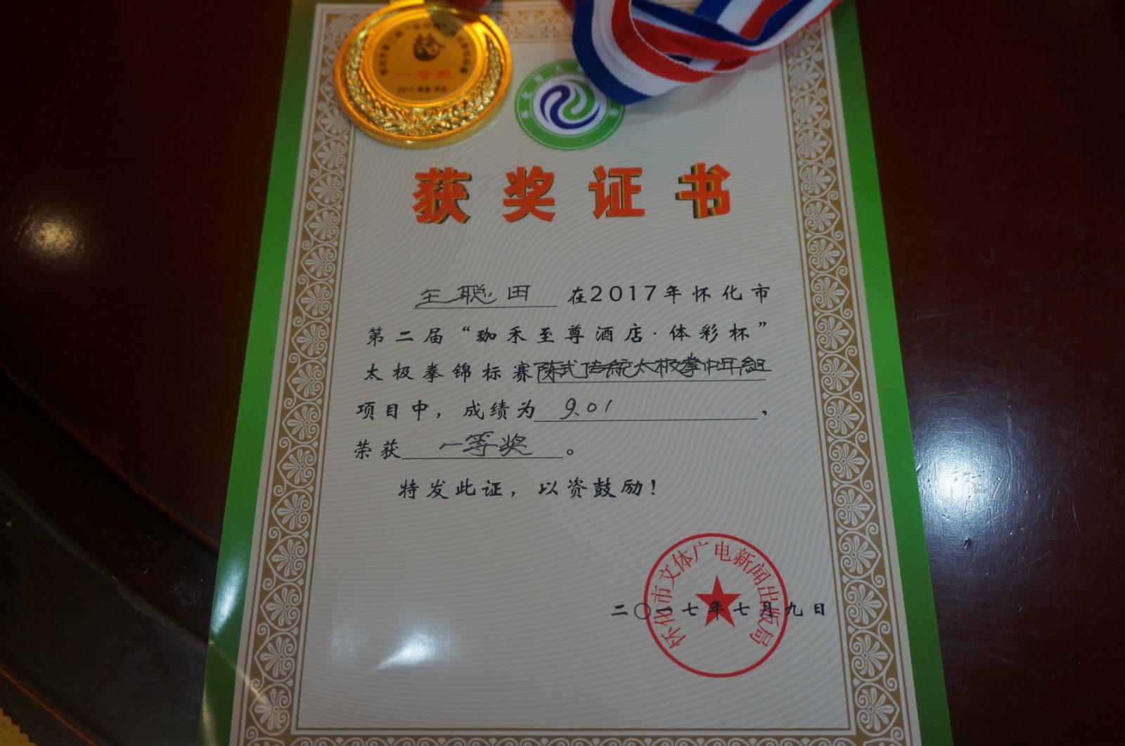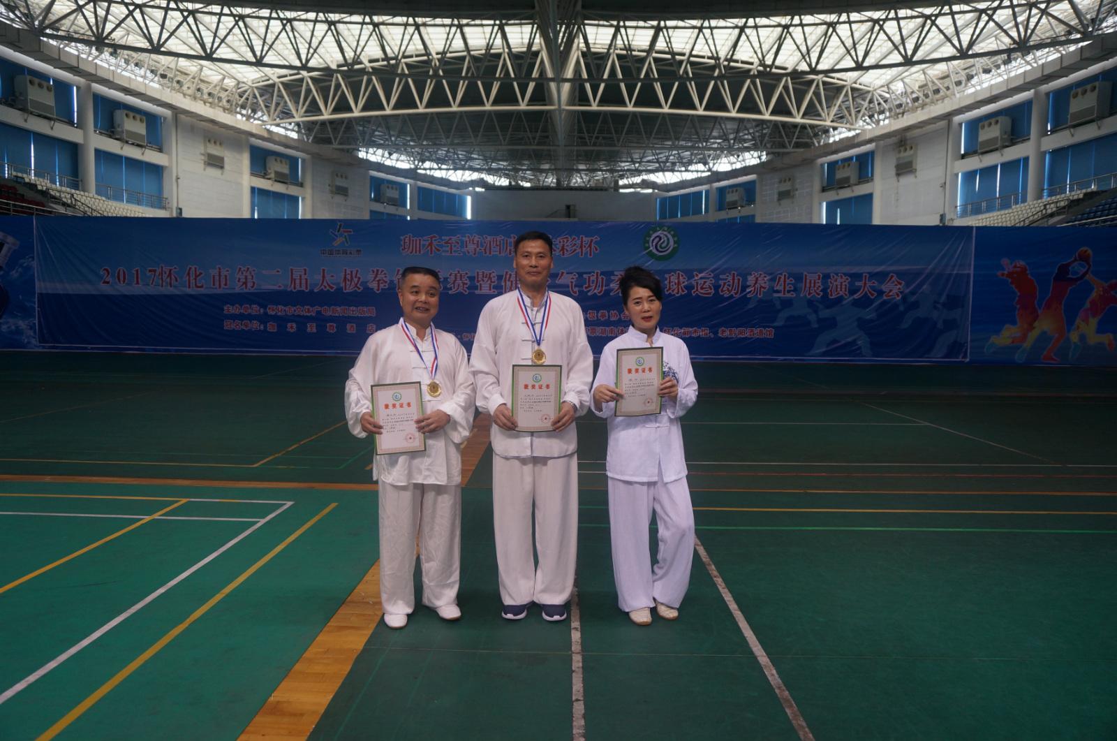 78日,院长王聪田在2017年怀化市第二届太极拳锦标赛陈式传统太极拳中年组比赛中,因其姿态轻盈柔和,动作娴熟飘逸,最终力压对手荣获一等奖的好成绩。